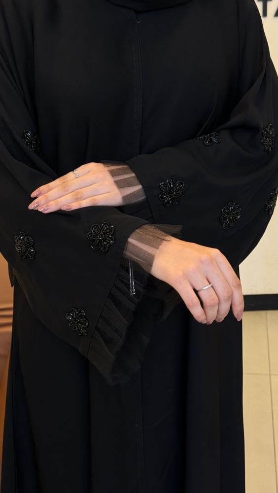 عباية أجوان تظهر بشك على الاكمام ورود و مزدوج مع شيفون لتكتمل أناقتك