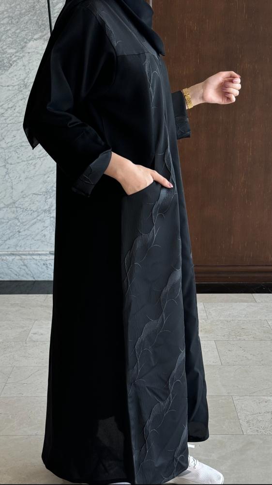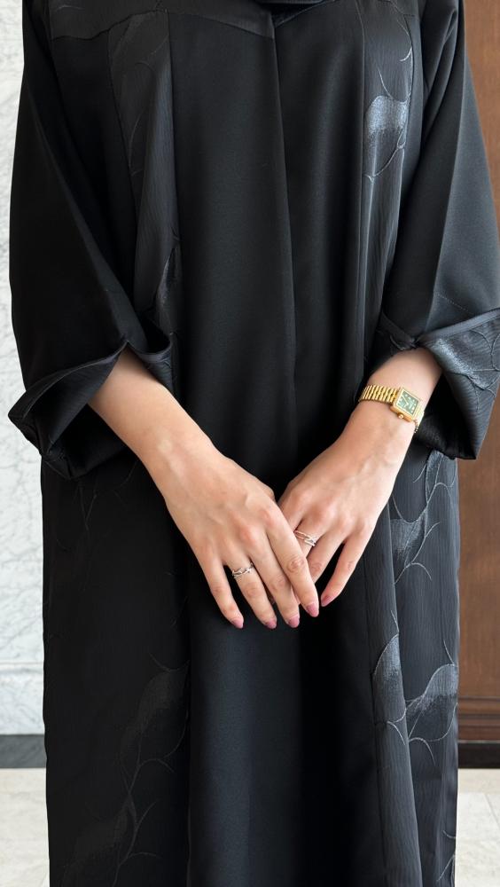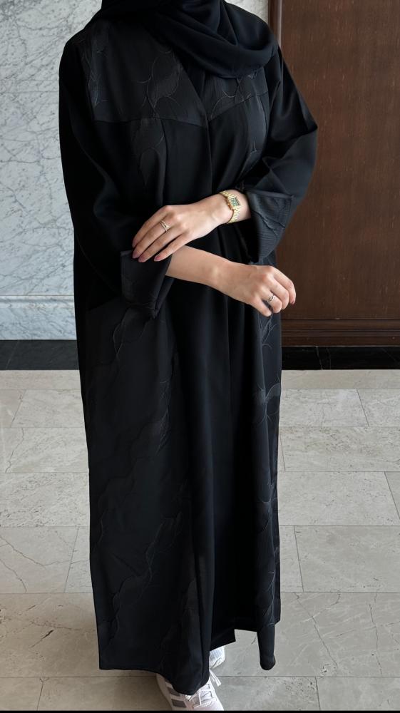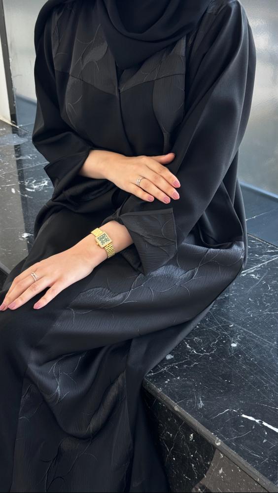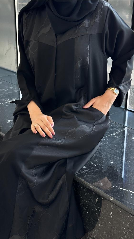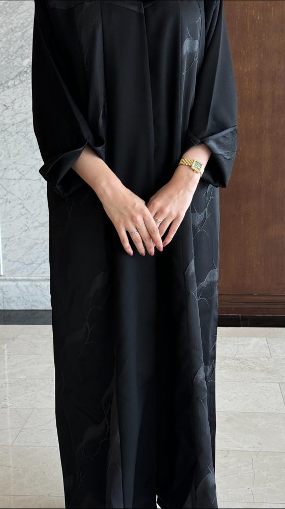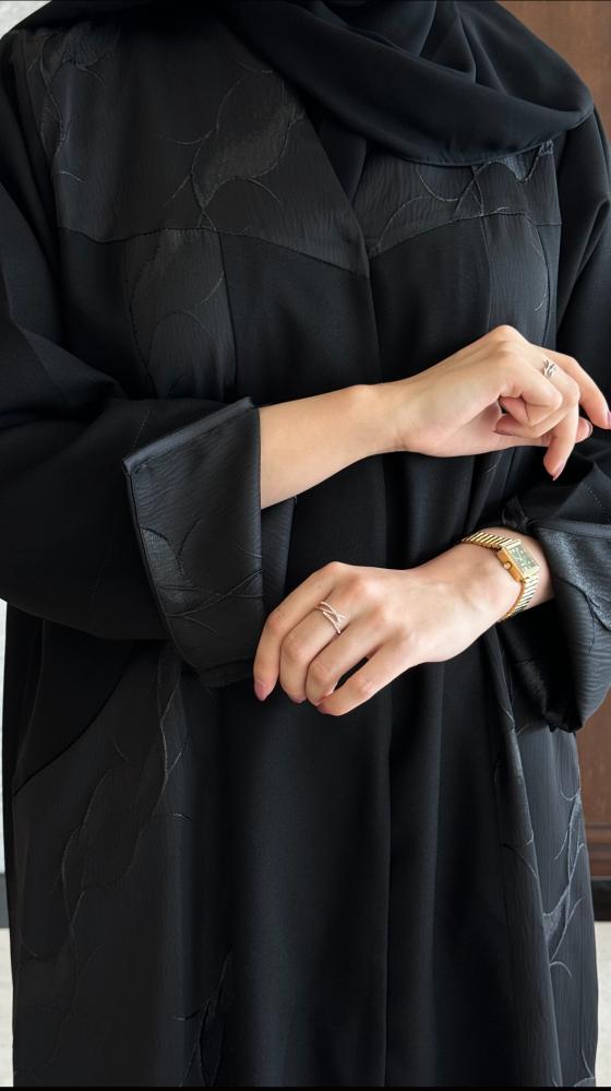 عباية حور تتميز بتصميم مختلف وقماش جاكار يظهر بقصات انيقه وجيوب مخفيه وأكمام مزينه مفتوحه