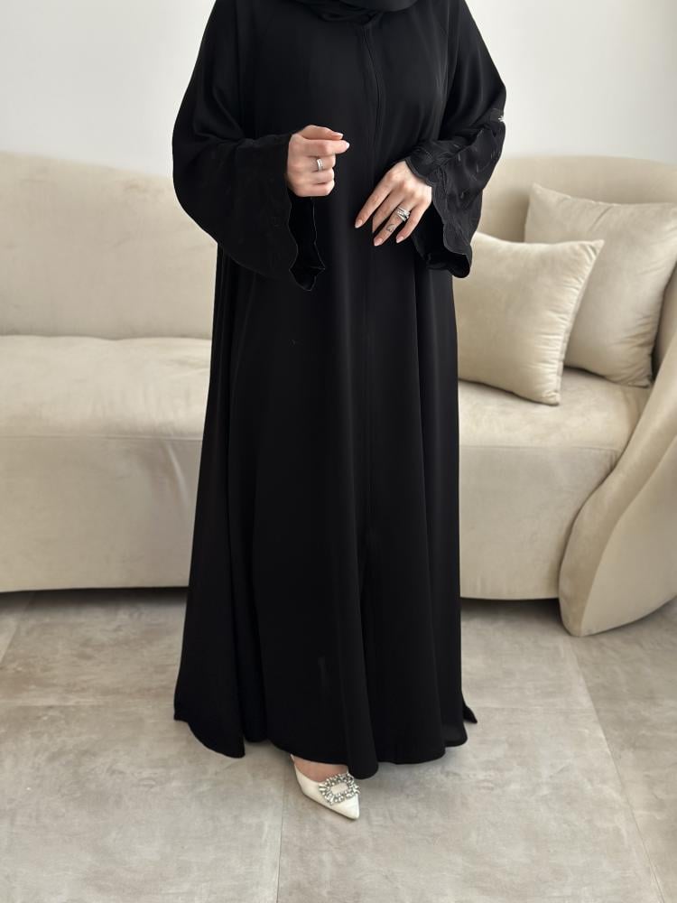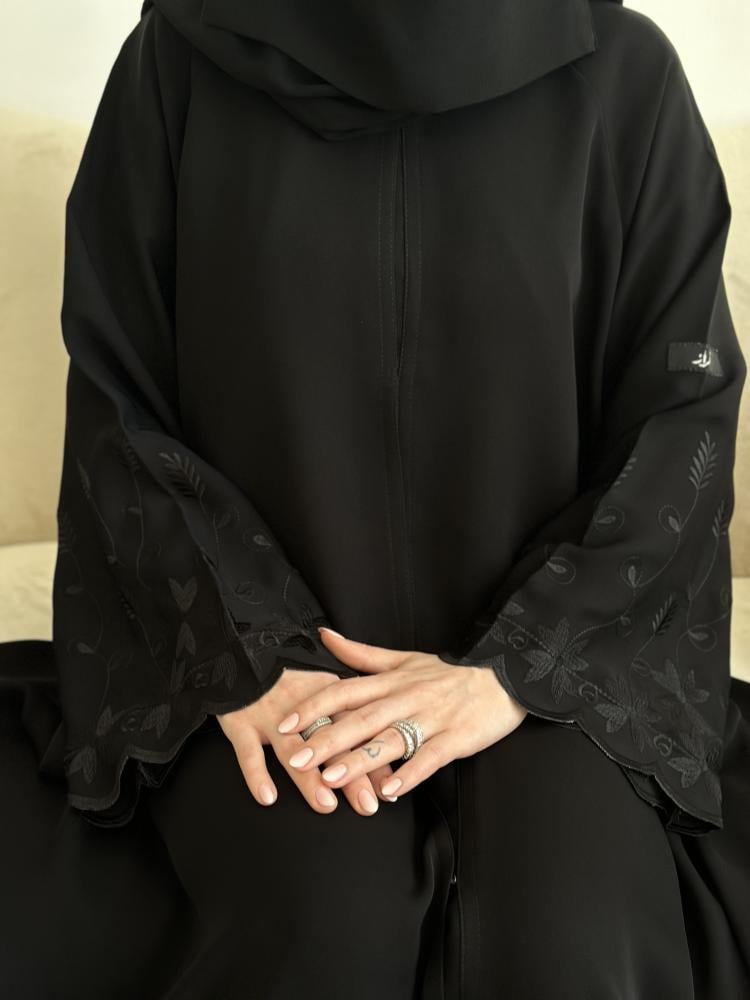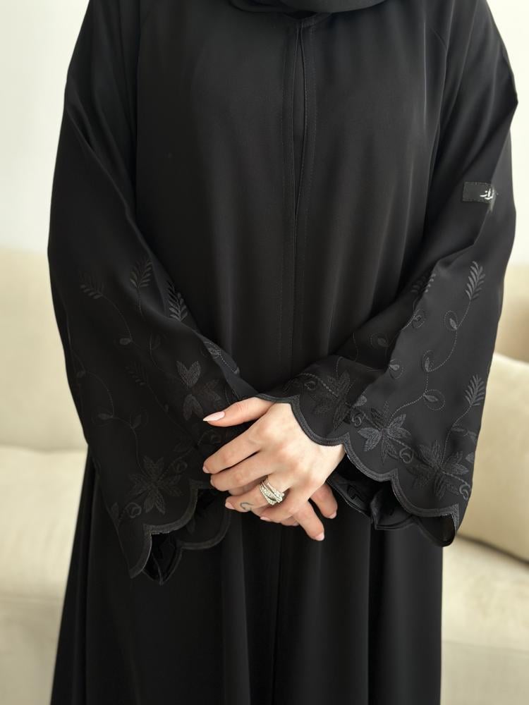 عباية فجر تهظر بتطريز على الاكمام ورود انيقه و بقماش باردد