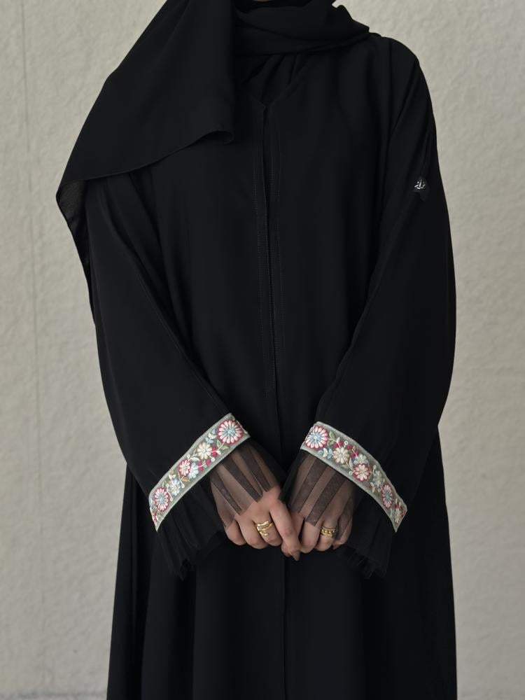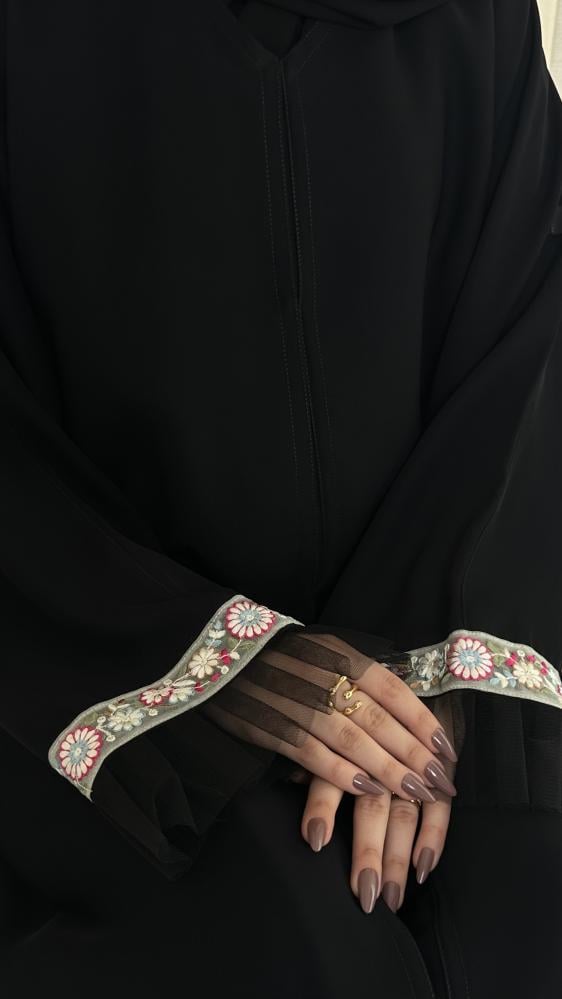 - طول العباية يؤخذ من الكتف الى أسفل الكعبين (من الأمام)